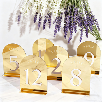 أرقام طاولة زفاف أكريليك مخصصة بالأرقام العربية 1-20 رقم طاولة مقوسة بمرآة للمطعم